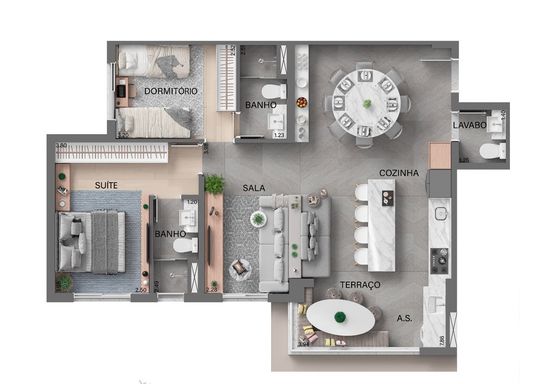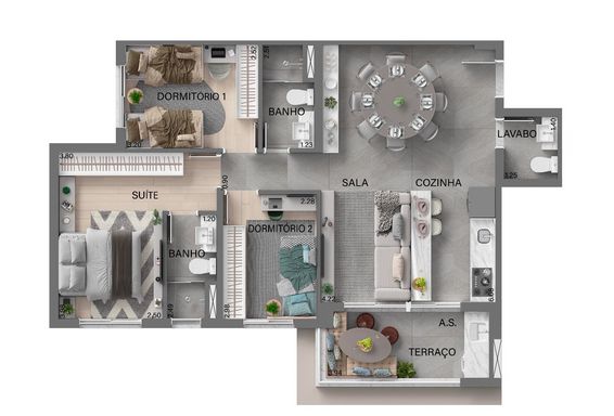 A planta de 78 m² com 3 quartos foi cuidadosamente desenvolvida para quem valoriza conforto e privacidade em todos os ambientes. O projeto inteligente otimiza cada metro quadrado, garantindo excelente distribuição dos espaços, integração entre áreas sociais e praticidade para o dia a dia da família.