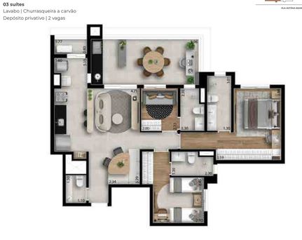 Os apartamentos foram projetados para atender diferentes estilos de vida, com plantas inteligentes de 101 m², que valorizam a integração dos ambientes, a iluminação natural e o aproveitamento máximo dos espaços. São unidades ideais para famílias que desejam mais conforto, funcionalidade e bem-estar no dia a dia.