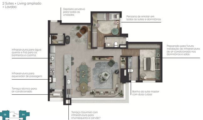 A planta inteligente integra os ambientes de forma harmoniosa, garantindo excelente aproveitamento dos espaços, iluminação natural e uma atmosfera acolhedora para viver e receber. Cada detalhe foi pensado para elevar a experiência de morar bem, com suíte que proporciona tranquilidade e liberdade no dia a dia.
