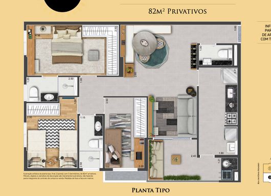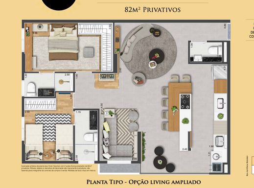 Com 82 m² muito bem distribuídos, este imóvel foi pensado para quem valoriza conforto, funcionalidade e um estilo de vida mais elevado. São 3 dormitórios, sendo 1 suíte, que oferecem o equilíbrio perfeito entre privacidade e convivência, ideal para famílias que buscam praticidade sem abrir mão de sofisticação.