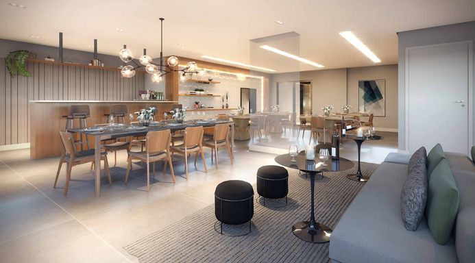 A planta inteligente integra os ambientes de forma fluida, criando uma atmosfera acolhedora e contemporânea. A área social convida a momentos especiais — seja para relaxar, receber amigos ou simplesmente aproveitar o prazer de estar em casa. As duas vagas de garagem complementam a experiência com comodidade e segurança no dia a dia.