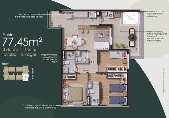 Aqui, cada espaço foi pensado para acompanhar o seu estilo de vida. Ambientes integrados, iluminação natural e uma planta inteligente criam o cenário perfeito para momentos que realmente importam — desde um café da manhã tranquilo até encontros especiais com família e amigos. Um lar que acolhe, inspira e valoriza suas conquistas.