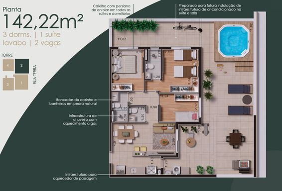 Imagine viver em um endereço onde a tranquilidade da natureza se encontra com a praticidade de uma cidade completa. No Jardim Tupanci, nasce um empreendimento que traduz o verdadeiro significado de morar bem, oferecendo apartamentos garden de 142 m² planejados para proporcionar conforto, elegância e qualidade de vida em cada detalhe.