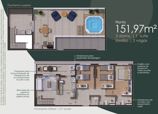 Aqui, cada espaço foi pensado para acompanhar o seu estilo de vida. Ambientes integrados, iluminação natural e uma planta inteligente criam o cenário perfeito para momentos que realmente importam — desde um café da manhã tranquilo até encontros especiais com família e amigos. Um lar que acolhe, inspira e valoriza suas conquistas.