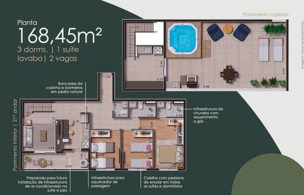 Imagine viver em um endereço onde a tranquilidade da natureza se encontra com a praticidade de uma cidade completa. No Jardim Tupanci, nasce um empreendimento que traduz o verdadeiro significado de morar bem, oferecendo coberturas duplex de 168 m² planejados para proporcionar conforto, elegância e qualidade de vida em cada detalhe.